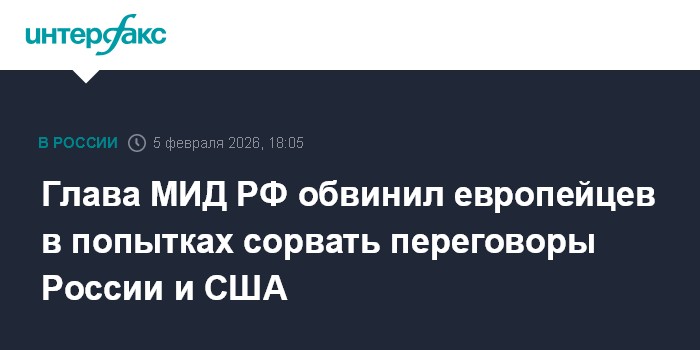 Москва. 5 февраля. INTERFAX.RU - Европейцы пытаются не допустить и сорвать переговоры между Россией и США, заявил глава МИД РФ Сергей Лавров.