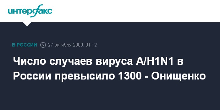 Число случаев вируса А/H1N1 в России превысило 1300 - Онищенко