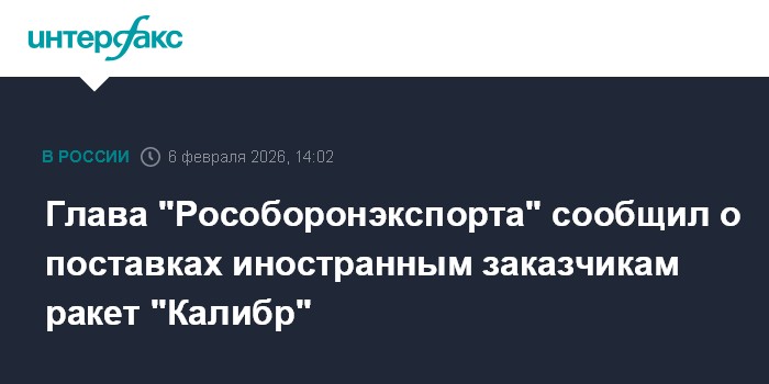 "Что касается ракет "Калибр" в экспортном исполнении, то они включены в состав интегрированных ракетных систем "Калибр-ПЛЭ" и "Калибр-НКЭ", которые установлены на подводных лодках и надводных кораблях, поставленных "Рособоронэкспортом" для ВМС ряда стран", - сказал Михеев в преддверии выставки World Defense Show-2026 в Эр-Рияде (8-12 февраля).