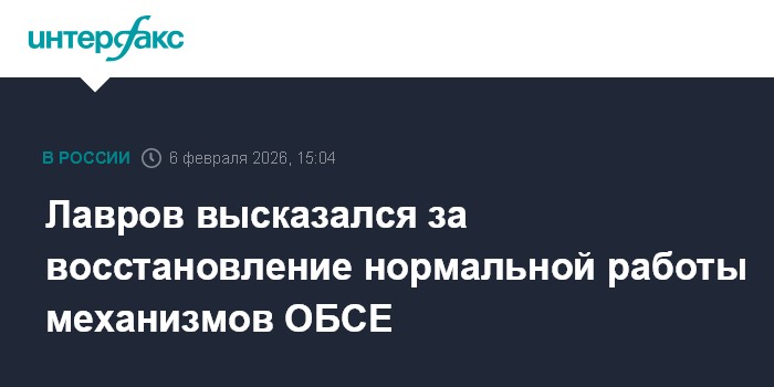 Москва. 6 февраля. INTERFAX.RU - Россия выступает за восстановление нормального функционирования базовых механизмов ОБСЕ, заявил глава МИД РФ Сергей Лавров.