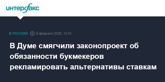 Москва. 6 февраля. INTERFAX.RU -Комитет Госдумы по экономической политике предложил отсрочить на полгода, до 1 сентября 2026 года, вступление в силу закона, который обяжет букмекеров информировать граждан об альтернативных азартным играм возможностях вложения денег - инвестициях и других финансовых услугах.