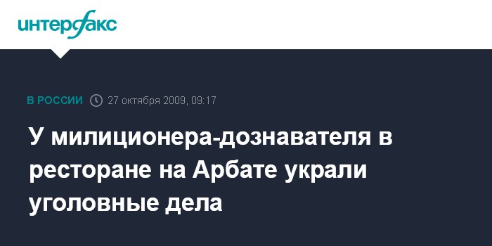 Двадцать пятого октября в 18:30 в милицию обратился дознаватель отдела дознания Московско-Курского линейного управления. 21-летний лейтенант милиции сообщил, что некоторое время назад на Новом Арбате в помещении одного из ресторанов неизвестные похитили у него портфель, в котором находились три уголовных дела. Они были возбуждены по фактам вандализма, причинения имущественного ущерба путем обмана и по факту грабежа.