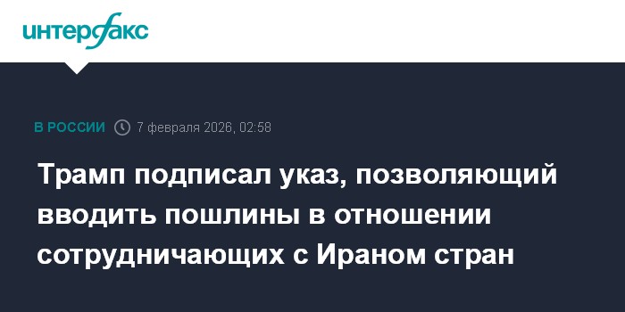 "Начиная с этого момента, любая страна, ведущая дела с Исламской Республикой Иран, будет платить пошлину в размере 25% на все операции, осуществляемые с Соединенными Штатами Америки", - написал Трамп в середине января в соцсети Truth Social.
