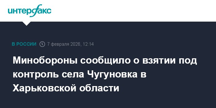 Москва. 7 февраля. INTERFAX.RU - Российская армия взяла под контроль село Чугуновка в Харьковской области, сообщило в субботу Минобороны РФ.