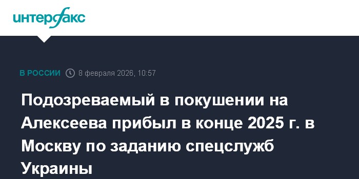 Подозреваемый в покушении на Алексеева прибыл в конце 2025 г. в Москву по заданию спецслужб Украины