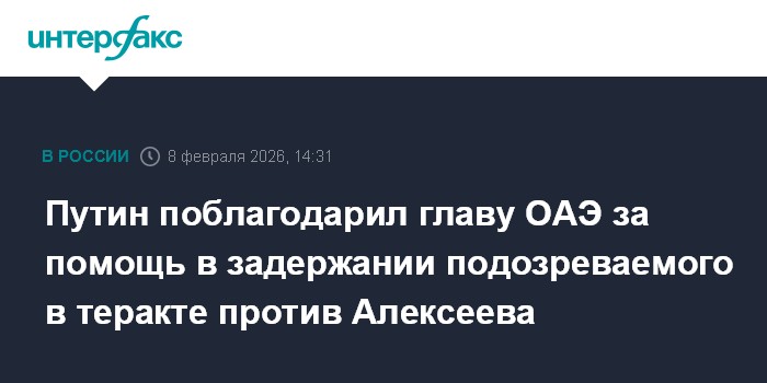 Путин поблагодарил главу ОАЭ за помощь в задержании подозреваемого в теракте против Алексеева