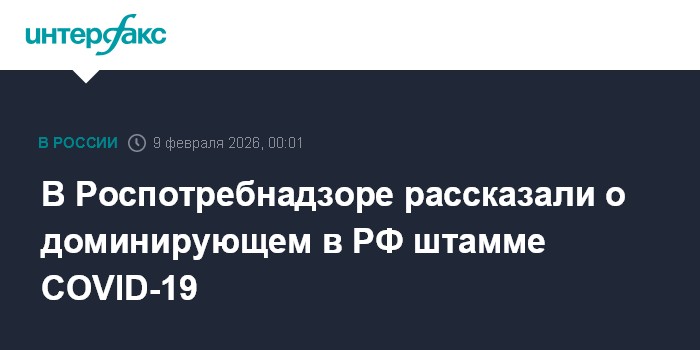 Москва. 9 февраля. INTERFAX.RU - Штамм COVID-19 Стратус остается доминирующим в РФ, на него приходится около 99% новых случаев заболевания, вариант BA.3.2, отличающийся значительным числом мутаций и потенциальным признаком иммунного ускользания, в РФ не выявлен, сообщили в Роспотребнадзоре.