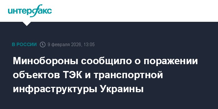 Москва. 9 февраля. INTERFAX.RU - Российские военнослужащие в течение суток нанесли поражение инфраструктуре военного аэродрома Украины, объектам топливно-энергетического комплекса и транспортной инфраструктуры, заявили в Минобороны России в понедельник.