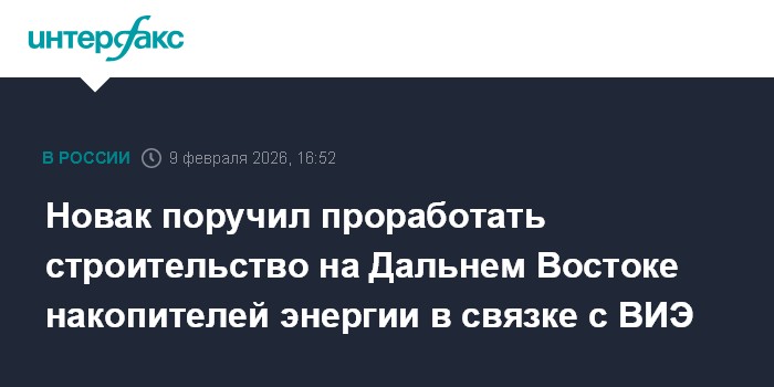 Москва. 9 февраля. INTERFAX.RU - Вице-премьер Александр Новак поручил проработать вопрос строительства на Дальнем Востоке систем накопления электроэнергии в связке с объектами возобновляемой энергетики, сообщила пресс-служба правительства РФ по итогам совещания по развитию энергосистемы региона.