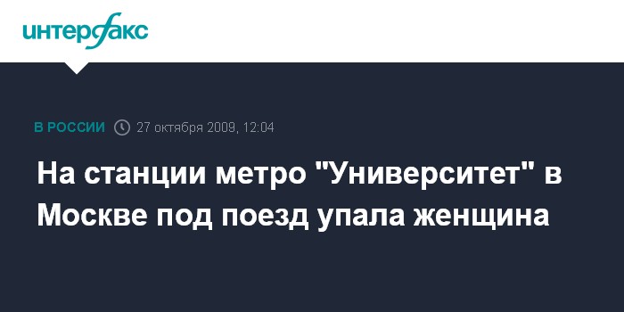 Москва. 27 октября. INTERFAX.RU - На станции метро "Университет" Сокольнической линии московского метро во вторник утром под поезд упала женщина, сообщили "Интерфаксу" в управлении информации и общественных связей ГУВД столицы. Она получила травмы и была госпитализирована.