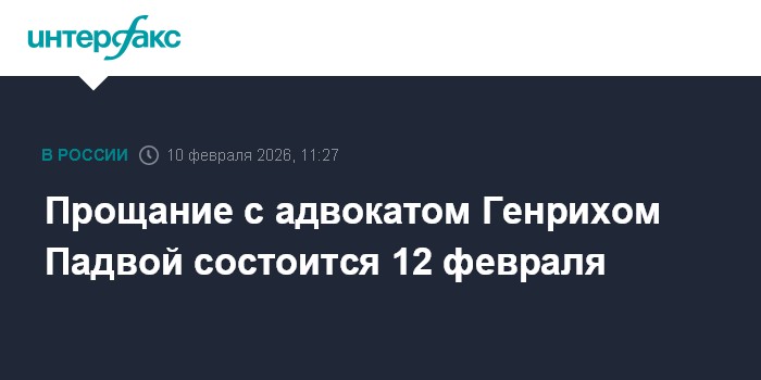 Москва. 10 февраля. INTERFAX.RU - Прощание с заслуженным юристом России Генрихом Падвой пройдет 12 февраля в Москве, сообщили "Интерфаксу" в Федеральной палате адвокатов.