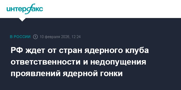 РФ ждет от стран ядерного клуба ответственности и недопущения проявлений ядерной гонки