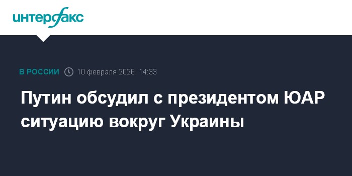 Москва. 10 февраля. INTERFAX.RU - Состоялся телефонный разговор президента РФ Владимира Путина с президентом Южно-Африканской Республики Сирилом Рамафосой, сообщает пресс-служба Кремля.
