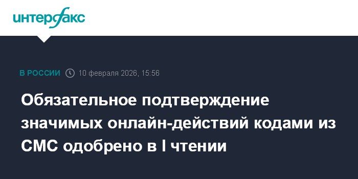 Москва. 10 февраля. INTERFAX.RU - Госдума приняла в первом чтении правительственный законопроект № 1110676-8, который с 1 сентября 2026 года вводит для российских сайтов обязательное подтверждение значимых действий в интернете кодами из СМС и одновременно сообщениями с использованием мессенджера Max.