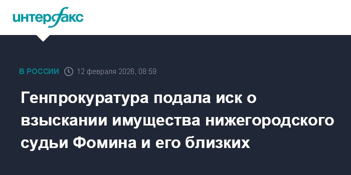 Москва. 12 февраля. INTERFAX.RU - Заместитель генерального прокурора РФ подал исковое заявление об обращении в доход государства имущества нижегородского судьи Виктора Фомина и его близких родственников в рамках мероприятий по контролю за соответствием расходов доходам госслужащих.