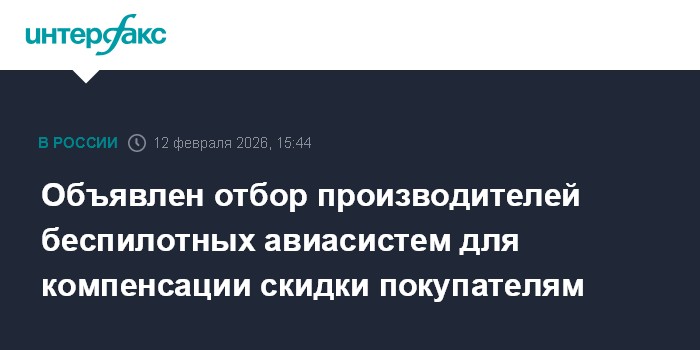 Москва. 12 февраля. INTERFAX.RU - Минпромторг РФ объявил отбор производителей беспилотных авиасистем (БАС) для компенсации части скидки, которую те предоставляют покупателям своей продукции.