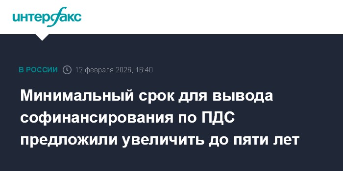 Москва. 12 февраля. INTERFAX.RU - Минфин готовит законопроект, который увеличивает минимальный срок для вывода средств софинансирования в рамках программы долгосрочных сбережений (ПДС) до пяти лет, сообщил журналистам в кулуарах конференции Alfa Talk "ЦФА: новая архитектура рынка" замминистра финансов Иван Чебесков.