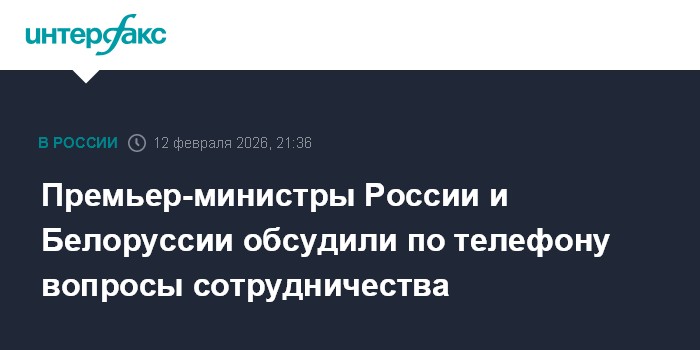 Москва. 12 февраля. INTERFAX.RU - Премьер-министр России Михаил Мишустин обсудил с премьер-министром Белоруссии Александром Турчиным вопросы двустороннего взаимодействия и ход реализации совместных экономических проектов, сообщила пресс-служба российского правительства.