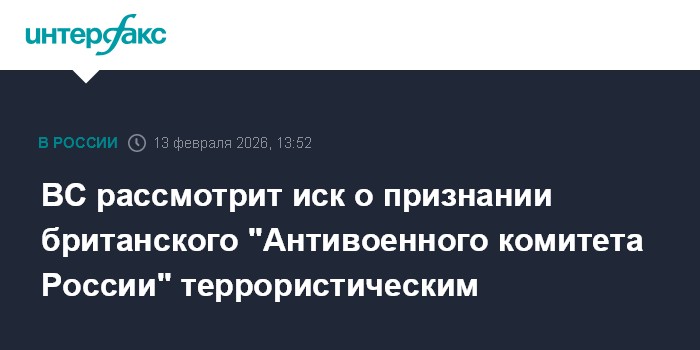 Москва. 13 февраля. INTERFAX.RU - Верховный суд России рассмотрит вопрос о признании британского общественного движения "Антивоенный комитет России" (признан в РФ нежелательным) террористической организацией.