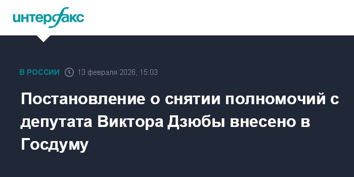 Москва. 13 февраля. INTERFAX.RU - В Госдуму внесен проект постановления о досрочном прекращении полномочий депутата нижней палаты парламента Виктора Дзюбы.