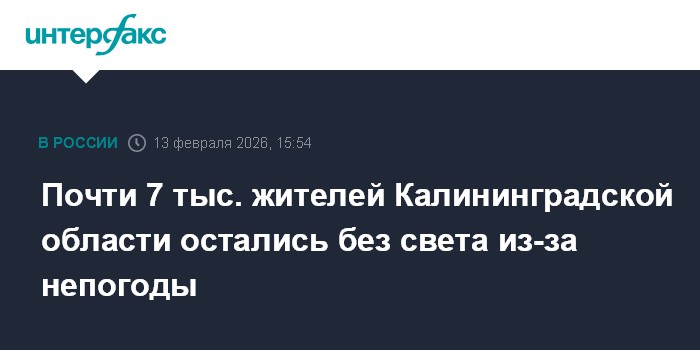 Москва. 13 февраля. INTERFAX.RU - Ледяной дождь оставил без электроснабжения 7 тыс. жителей Калининградской области, сообщил губернатор региона Алексей Беспрозванных в своем телеграм-канале в пятницу.