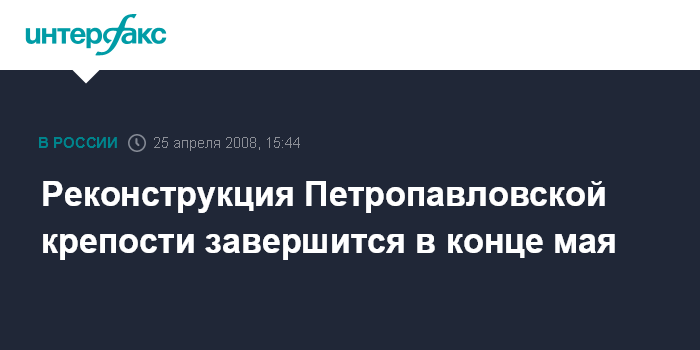 Москва. 25 апреля. INTERFAX.RU - Реконструкция Петропавловской крепости, начатая в августе 2007 г., завершится в конце мая. Об этом сообщил директор Государственного музея истории Санкт-Петербурга Александр Колякин на пресс-конференции в пятницу.