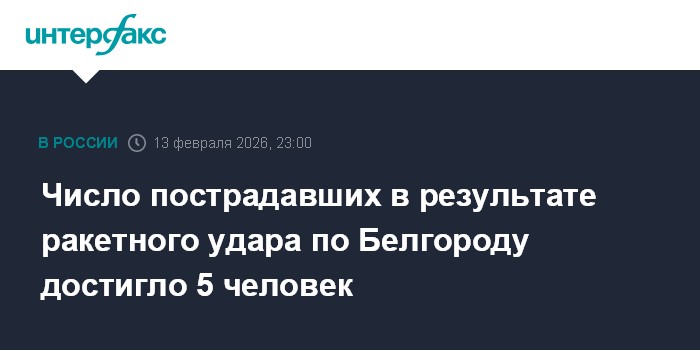 Москва. 13 февраля. INTERFAX.RU - Губернатор Белгородской области Вячеслав Гладков сообщил, что число пострадавших в результате ракетного удара по Белгороду достигло пяти.