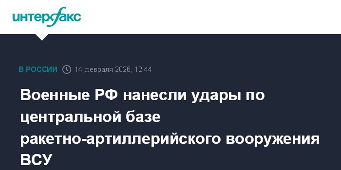Москва. 14 февраля. INTERFAX.RU - Российские военные в течение суток нанесли удары по транспортной и энергетической инфраструктуре Украины, базе ракетно-артиллерийского вооружения, сообщили в Минобороны РФ.