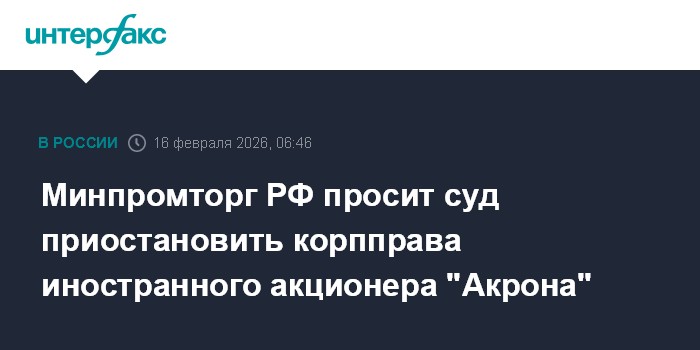 Минпромторг РФ просит суд приостановить корпправа иностранного акционера "Акрона"
