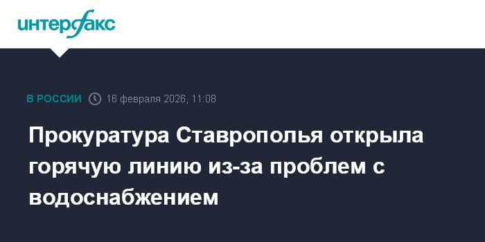 Москва. 16 февраля. INTERFAX.RU - Прокуратура Ставропольского края открыла горячую линию для жалоб на сбои в водоснабжении в регионе Кавказских Минеральных Вод, сообщает пресс-служба надзорного ведомства.