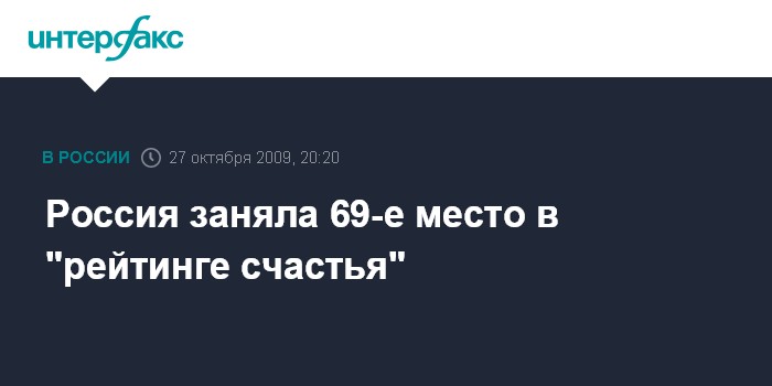 Россия заняла 69-е место в "рейтинге счастья"