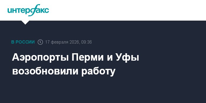 Москва. 17 февраля. INTERFAX.RU - Аэропорты Уфы и Перми ("Большое Савино") возобновили работу, сообщила Росавиация.