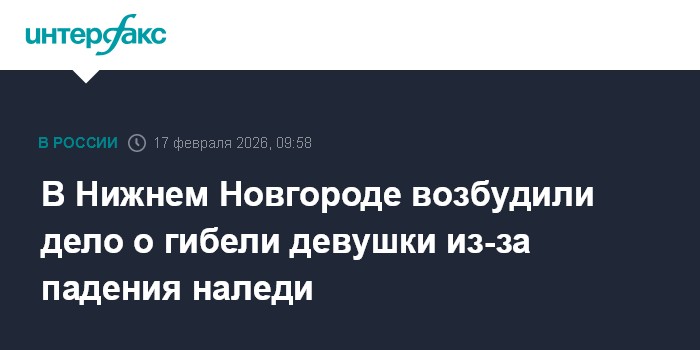 Москва. 17 февраля. INTERFAX.RU - В Нижнем Новгороде расследуют уголовное дело по факту гибели девушки в результате схода наледи с крыши жилого дома, фигуранту предъявлено обвинение, сообщило региональное управление СКР.