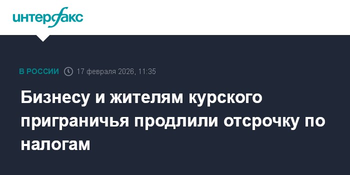 Москва. 17 февраля. INTERFAX.RU - Правительство продлило отсрочку по уплате транспортного и земельного налогов, а также налога на имущество физических лиц для граждан и предпринимателей в приграничных территориях Курской области, сообщает сайт правительства.