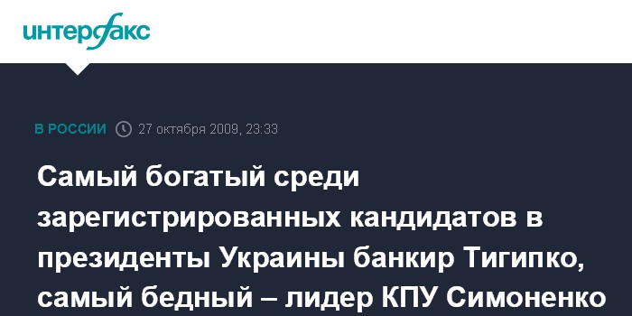 Самый богатый среди зарегистрированных кандидатов в президенты Украины банкир Тигипко, самый бедный – лидер КПУ Симоненко