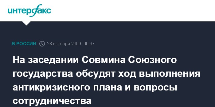 На заседании Совмина Союзного государства обсудят ход выполнения антикризисного плана и вопросы сотрудничества