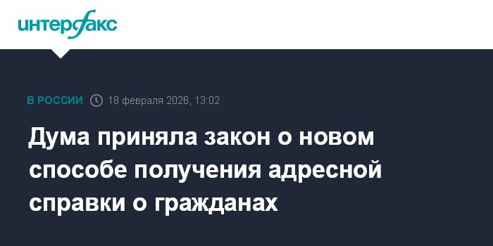 Москва. 18 февраля. INTERFAX.RU - Госдума в среду приняла в третьем, окончательном, чтении закон о совершенствовании механизмов предоставления физическим и юридическим лицам адресно-справочной информации о гражданах РФ.