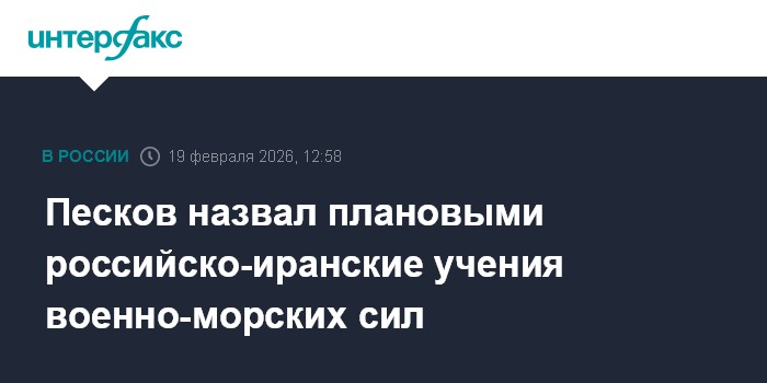 Москва. 19 февраля. INTERFAX.RU - Совместные военно-морские учения России и Ирана являются плановыми, заявил пресс-секретарь президента РФ Дмитрий Песков.
