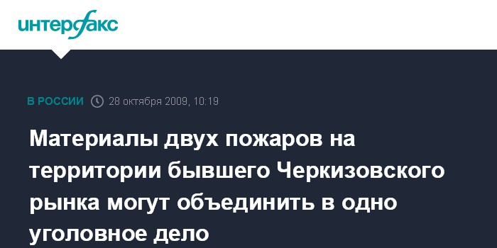 Москва. 28 октября. INTERFAX.RU – Материалы расследования по пожару на территории бывшего Черкизовского рынка, который произошел минувшей ночью, могут быть приобщены к ранее возбужденному уголовному делу по факту другого пожара на этой территории, сообщил "Интерфаксу" в среду источник в оперативно-следственной группе.