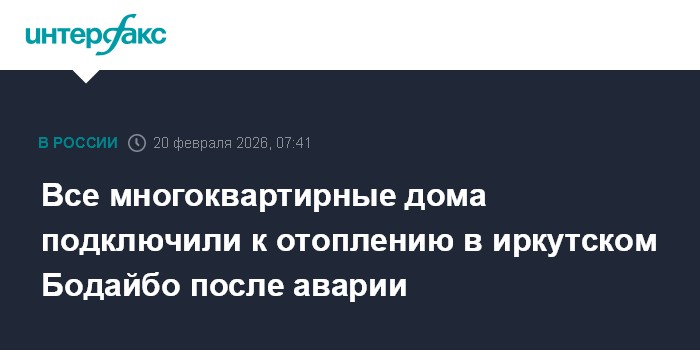 Москва. 20 февраля. INTERFAX.RU - Теплоснабжение восстановлено в 175 жилых домах в Бодайбо Иркутской области, где устраняют последствия коммунальной аварии, сообщил губернатор Игорь Кобзев в своем телеграм-канале в пятницу.