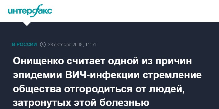 Онищенко считает одной из причин эпидемии ВИЧ-инфекции стремление общества отгородиться от людей, затронутых этой болезнью