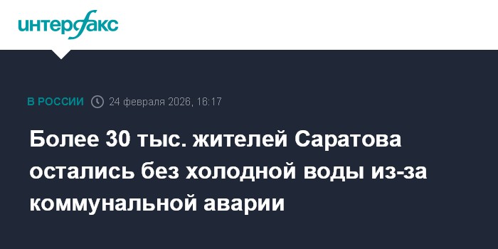 Москва. 24 февраля. INTERFAX.RU - Коммунальные службы Саратова устраняют аварию на сетях водоканала, оставившую без холодной воды несколько десятков тысяч жителей города. Об этом сообщается в телеграм-канале прокуратуры области во вторник.