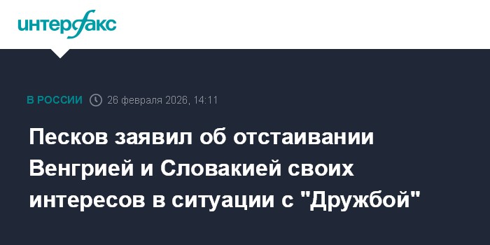 Песков заявил об отстаивании Венгрией и Словакией своих интересов в ситуации с "Дружбой"