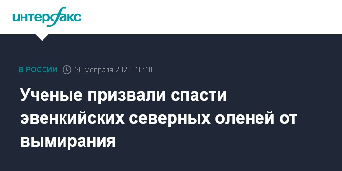 Москва. 26 февраля. INTERFAX.RU - В России поголовье эвенкийской породы северных оленей сократилось на 219% за двадцать лет и нуждается в срочном спасении от вымирания, сообщает сайте Санкт-Петербургского федерального исследовательского центра РАН (СПб ФИЦ РАН) со ссылкой на результаты исследования по обобщению векового опыта научной селекции северных оленей.