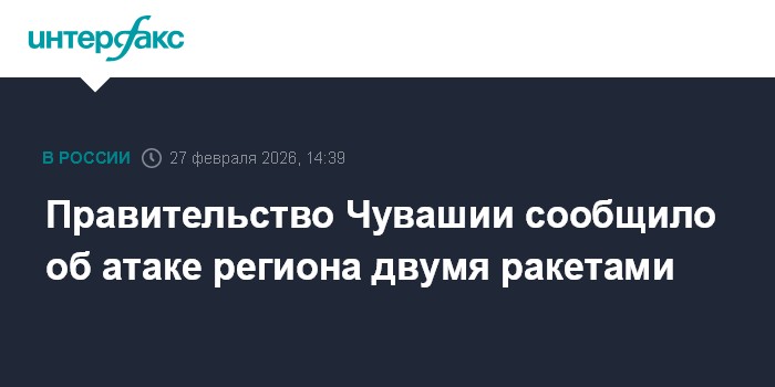 Москва. 27 февраля. INTERFAX.RU - Чувашию днем атаковали две ракеты, сообщило правительство региона в своем телеграм-канале.
