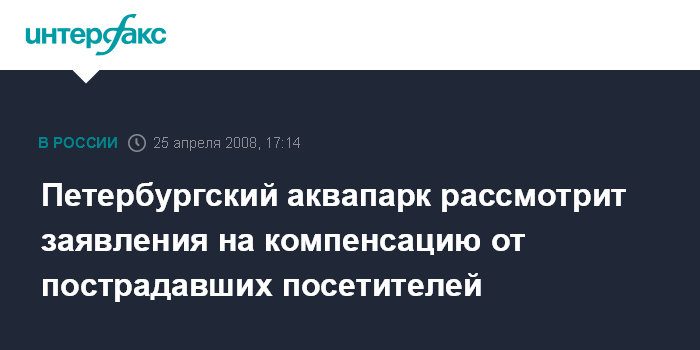 Петербургский аквапарк рассмотрит заявления на компенсацию от пострадавших посетителей