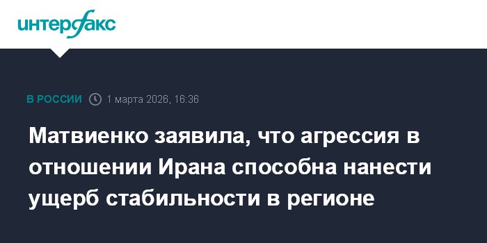 Матвиенко заявила, что агрессия в отношении Ирана способна нанести ущерб стабильности в регионе