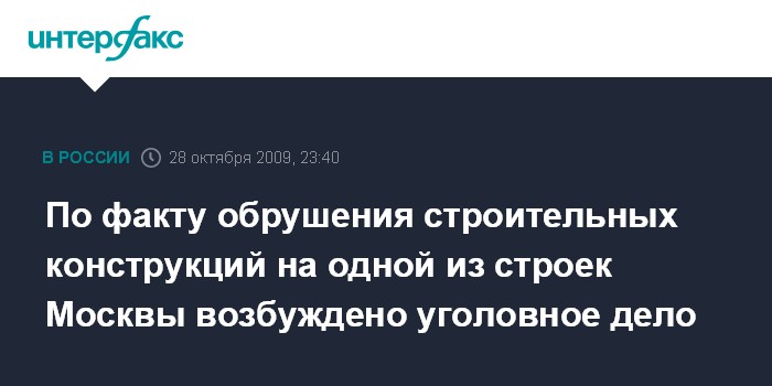 Москва. 28 октября. ИНТЕРФАКС - По факту обрушения на одной из строек на северо-западе Москвы и гибели людей возбуждено уголовное дело.