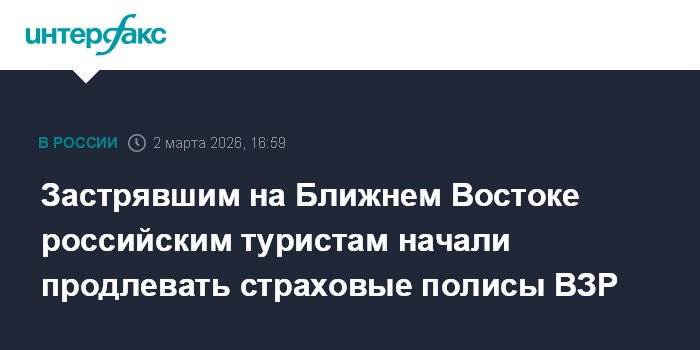"Ингосстрах" также сообщил о продлении действия полисов ВЗР для застрявших за границей российских туристов. "Продление распространяется на туристов, которые были вынуждены задержаться в ОАЭ, Омане, Катаре, Бахрейне, Саудовской Аравии и других странах региона, а также на путешественников, находящихся в третьих странах и не сумевших вылететь в связи с отменой или переносом стыковочных рейсов через ближневосточные авиационные транспортные узлы. Полисы ВЗР, оформленные через любые каналы продаж - на официальном сайте компании, у туроператоров и агентов, а также через партнерские сервисы, - будут действовать до момента фактического возвращения застрахованных на территорию России", - сказали в "Ингосстрахе".
