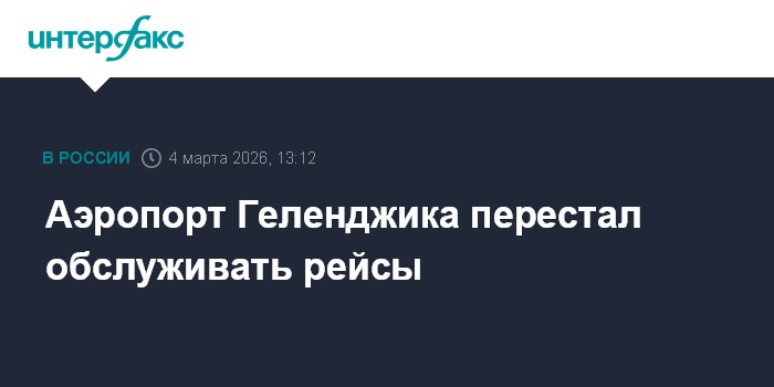 Москва. 4 марта. INTERFAX.RU - Аэропорт Геленджика перестал отправлять и принимать рейсы, сообщает Росавиация.